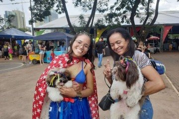 Ana Luisa Cruz, de 17 anos, é uma uma entusiasta do carnaval de Brasília. Moradora do Cruzeiro, ela diz que frequenta os blocos da região desde os dois anos de idade. Este ano, ela levou suas companheiras inseparáveis: as cadelinhas Zoe e Marcelina. “Elas adoram eventos, mas a gente procura ficar um pouco afastada da multidão para que elas não fiquem com medo. Estou gostando muito de tudo”, declara a jovem, ao lado de sua mãe, Iris Neide.