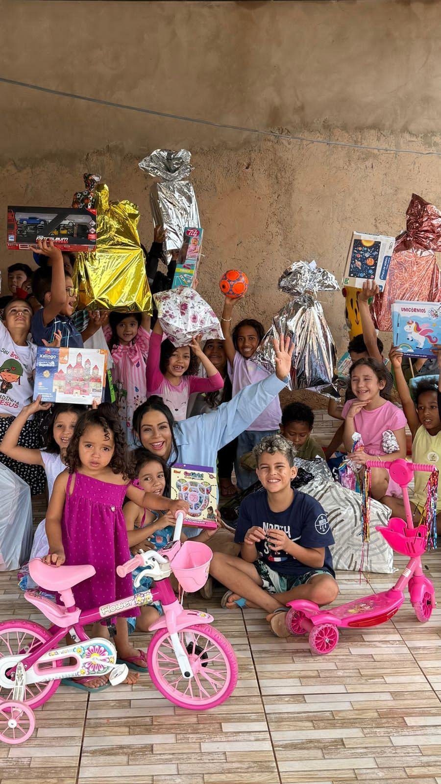 Um dos locais contemplados pela edição de 2025 foi o Centro Comunitário Tia Gigi, localizado na Queda do Descoberto, em Águas Lindas de Goiás, região do Entorno de Brasília. O espaço se transformou em cenário de sorrisos, abraços e emoção ao receber a ação solidária, que beneficiou mais de 80 crianças da comunidade.