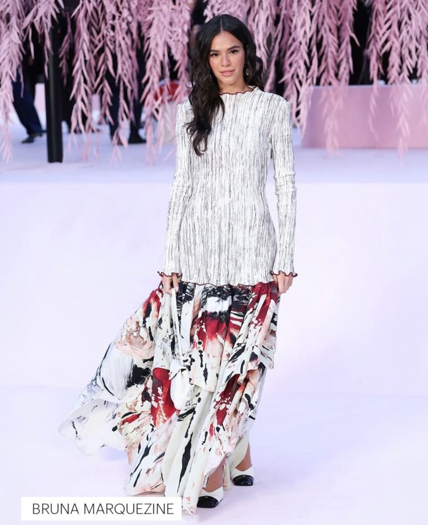 O Brasil também teve destaque: as atrizes Fernanda Torres e Bruna Marquezine se sentaram lado a lado na fila A e foram muito fotografadas pelos principais veículos de moda e entretenimento.