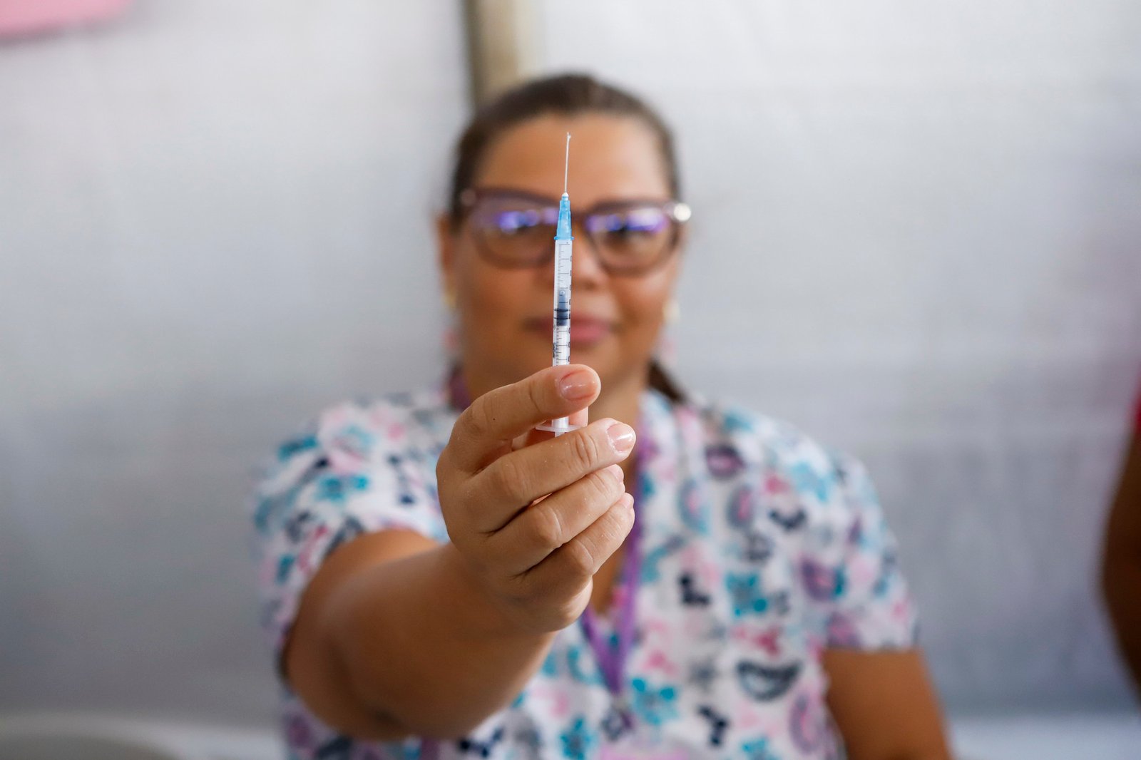 Natasha, 12, que mais cedo havia recebido a vacina dT (dupla bacteriana adulto), contra difteria e tétano, segurava a cadela. “Hoje é o dia de proteger a família inteira”, resumiu a matriarca.