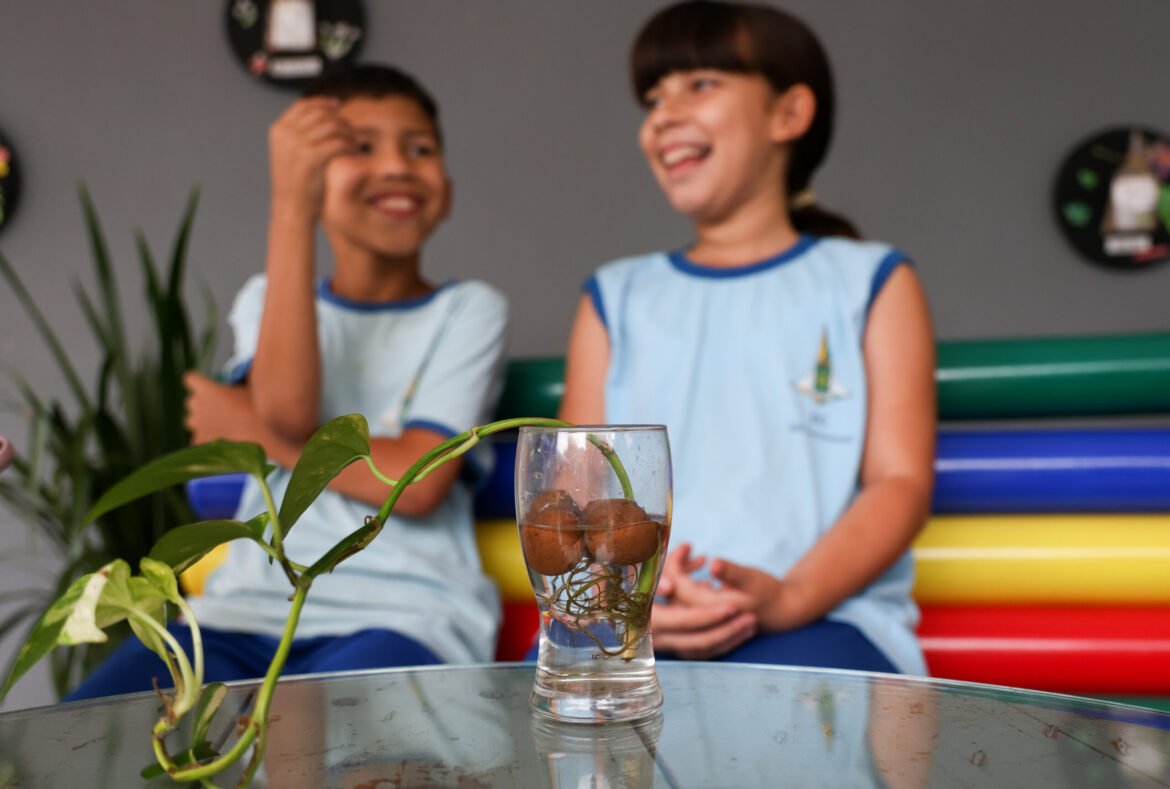 2Na zona rural de São Sebastião, a Escola Classe (EC) São Bartolomeu conviveu durante muito tempo com os impactos do avanço urbano e do desmatamento na região. Há 15 anos, buscando preservar o bioma local e despertar a consciência sustentável nas novas gerações, a escola criou o projeto Viva Verde Vida, que se desdobrou em iniciativas pedagógicas e transformou a natureza em sala de aula a céu aberto.A diretora, Theodora Rodrigues, conta que os alunos aprendem educação ambiental aliada aos conteúdos de matemática, alfabetização e literatura. “Os subprojetos corroboram para a alfabetização tanto da língua materna quanto para matemática, por meio da quantificação das colheitas e dos plantios, do estudo do solo e da produção de textos a partir do que foi estudado; é como se o Cerrado fosse um grande alfabeto”, relata.Devido à natureza e localização, a escola possui espaços que se tornam verdadeiras ferramentas de aprendizagens. Com acesso a uma área de mata e trilhas, a EC São Bartolomeu incentiva o estudo da biodiversidade local, a identificação de espécies de flora e fauna e a compreensão dos ecossistemas para além das salas de aula.Recursos hídricos e reflorestamentoAlém do Viva Verde Vida, este ano a unidade idealizou o projeto Água se Planta, voltado à preservação dos recursos hídricos e o reflorestamento, em meio à crise climática vivida pelos brasilienses e testemunhada pelos funcionários e estudantes da rede. Inspirada por uma pesquisa do agricultor suíço Ernst Götsch em solo baiano, Theodora decidiu trazer esse conhecimento de maneira mais lúdica às crianças por meio dos livros infantis Os Rios Voadores, de Yana Marull, e Azul e Lindo: Planeta Terra Nossa Casa, de Ruth Rocha.Como complemento à leitura, os pequenos visitaram um lago próximo à escola e plantaram um ipê para colocar em prática o aprendizado adquirido. Os alunos Letícia Sousa e Isaque Cardoso, ambos de 9 anos, foram os responsáveis por apresentar, no Circuito de Ciências, o berçário de plantas que as turmas criaram para representar o ato de “plantar água” – conceito que adotaram.“É quando as raízes da árvore sugam, que nem um canudinho, água debaixo da terra, e essa água é transpirada depois, virando vapor d’água que vai ajudar a formar as nuvens de chuva”, explica Letícia.Yana Marull visitou a comunidade escolar para contar a história de seu livro aos estudantes, o que fortaleceu ainda mais o processo pedagógico. “O conhecimento foi dominado de fato pelos alunos a ponto de, no Circuito de Ciências, o público se impressionar com a fala certeira deles”, relata a professora Luciana Miranda. “Mesmo depois da apresentação, eles ainda sabem o que são rios voadores. Então, o processo foi internalizado e levado para suas famílias e para mais pessoas”.*Com informações da Secretaria de EducaçãoPor Revista Plano B