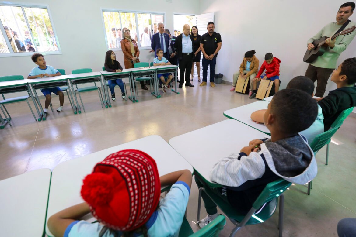 O governador Ibaneis Rocha visitou, nesta quarta-feira (21), a Escola Parque da Natureza e do Esporte, no Núcleo Bandeirante, onde foram construídas seis novas salas modulares. A unidade, que já havia passado por uma reconstrução em 2022, agora ganha reforço na estrutura para ampliar o atendimento aos estudantes da rede pública de ensino no contraturno escolar.