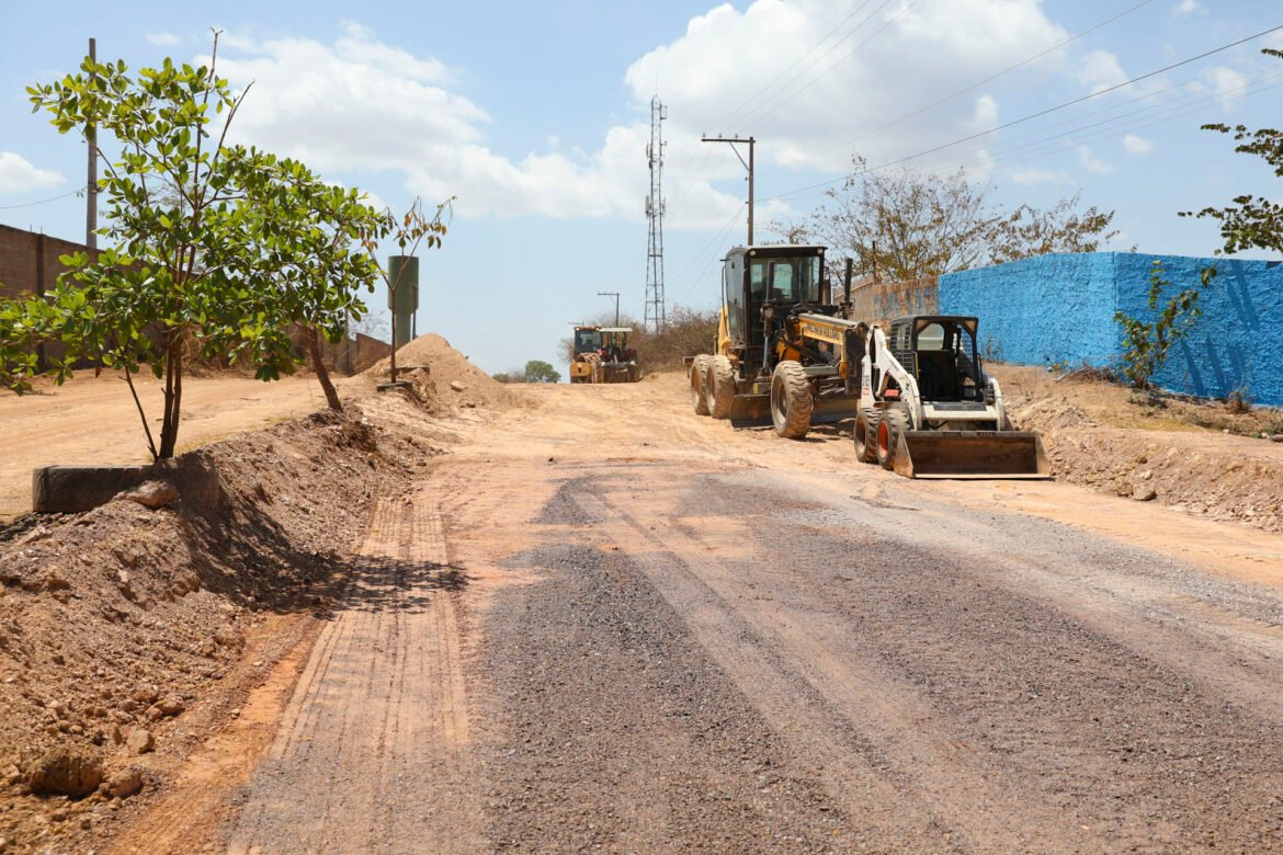 Mais de 400 metros da via já estão concluídos. As equipes da Seagri executam serviços de terraplanagem em um trecho de 800 metros próximo à Escola Natureza. O trabalho utiliza retroescavadeiras, rolos compactadores e motoniveladoras, com o objetivo de preparar o terreno para a pavimentação asfáltica.