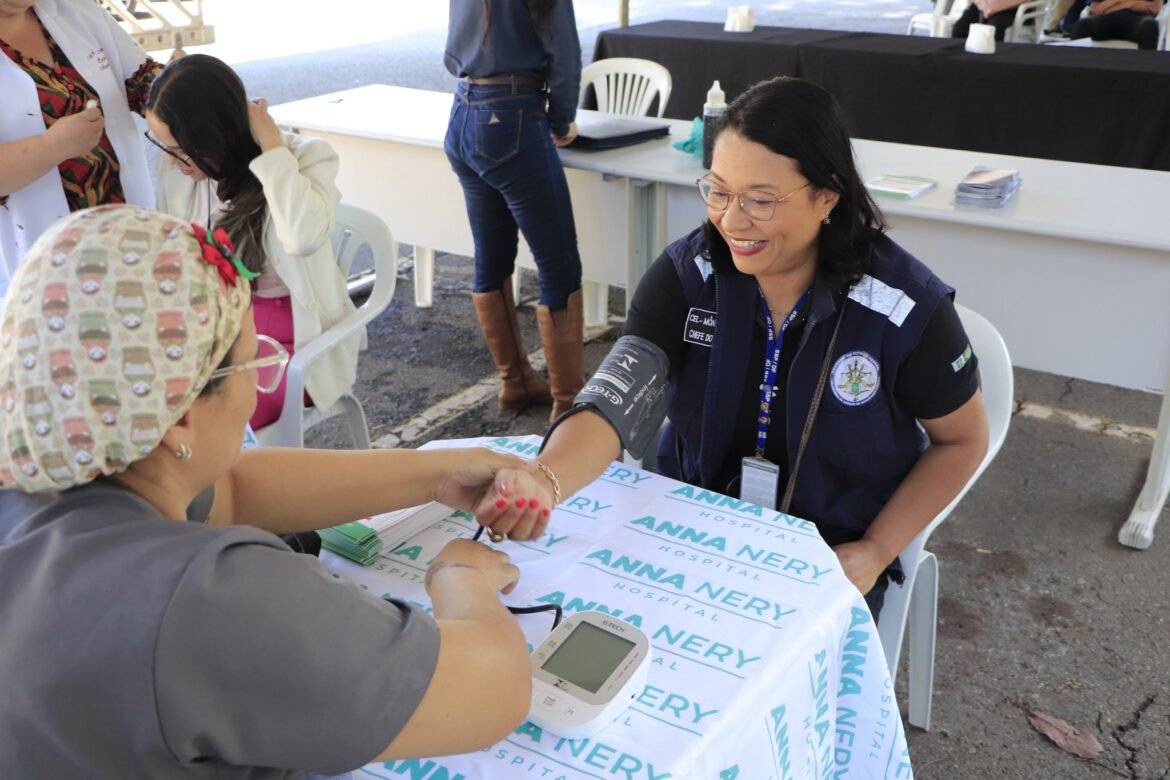 Espaço Saúde do Servidor com aferição de pressão, bioimpedância, ginástica laboral, espaço para cuidado pessoal, limpeza de pele, entre outros.