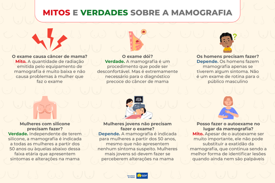 Levam poucos minutos na internet para ser bombardeado por histórias, interpretações equivocadas ou notícias falsas. Nenhum assunto está imune, nem mesmo procedimentos de saúde fundamentais para diagnósticos importantes. É o caso da mamografia, exame que já levantou uma série de perguntas: causa câncer? Homens não podem fazer? Só mulheres mais velhas precisam ser submetidas? Tenho silicone, é necessário?
