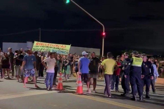 Moradores da Granja Modelo, no Riacho Fundo, bloquearam a EPNB, na altura da Brasal Refrigerantes, durante um protesto, na noite desta quinta-feira (30/1). A manifestação teve como principal motivação a recente derrubada de imóveis no Residencial Jardim Vitória, ação realizada horas antes pelo Instituto Brasília Ambiental (Ibram).