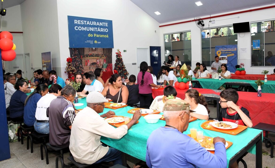 2“Ter essa refeição hoje é mais do que apenas comida no prato; é sentir que, mesmo em meio à dificuldade de estar sem emprego, eu ainda faço parte da celebração e não fui esquecida.” O relato é da moradora do Paranoá, Leiciana Pereira, 39 anos, mãe de quatro filhos, uma das mais de 2 mil pessoas que participaram do almoço natalino promovido nesta quarta-feira (17) no Restaurante Comunitário do Paranoá.A ação integra a campanha Nosso Natal, criada em 2019 pela primeira-dama Mayara Noronha Rocha, e faz parte do calendário de ações de fim de ano do Governo do Distrito Federal (GDF). No Restaurante Comunitário do Paranoá foram servidas 2.221 refeições, ao custo simbólico de R$ 1 para os usuários.O objetivo do projeto é oferecer um ambiente acolhedor e proporcionar momentos de confraternização às famílias. O restaurante foi decorado com enfeites natalinos e contou com a presença do Papai Noel, que distribuiu presentes às crianças. A Caesb participou da ação, com a entrega de brindes e a distribuição de água gelada e de qualidade, como ocorre em todos os restaurantes comunitários do DF.O cardápio especial incluiu pernil suíno assado ao molho Califórnia, com opção de coxa e sobrecoxa ao molho de ervas, além de arroz, feijão carioca, farofa natalina com bacon, azeitona, uva-passa, batata palha e cheiro-verde. Também foi servida salada tropical e, como sobremesa, bombom, acompanhado de suco de abacaxi com hortelã.Para a secretária-geral da Caesb, Grazielle Borges, a participação na campanha reforça o compromisso social da companhia. “Essa é uma ação concreta de solidariedade e compromisso social. É mais que um almoço natalino. É um gesto de cuidado, dignidade e amor”, afirmou. Também esteve presente no evento o secretário-executivo da Família, Mauricio Blois.O secretário de Relações Institucionais do DF, Agaciel Maia, destacou a importância da iniciativa. “Eu me sinto honrado em participar e contribuir, trazendo um alimento mais digno e poder também presentear as crianças do Paranoá. É gratificante ver o sorriso e o olhar das crianças”, afirmou.Já o controlador-geral do DF substituto, Breno Albuquerque, ressaltou o impacto da ação. “Hoje estamos aqui reunidos no Restaurante Comunitário do Paranoá para levar um pouco de afeto e de carinho à população”, agradeceu.O administrador do Paranoá, Horácio Neto, também participou da celebração. “É gratificante para nós, servidores públicos, neste período do Natal, que é um momento de fraternidade e amor, servir a população do Paranoá com um cardápio especial de comidas natalinas. Também poder presentear as crianças com a presença do Papai Noel. É muito bom alegrar a vida das pessoas nessa época de festas”, afirmou.SurpresaFrequentador do restaurante comunitário, Samuel Teixeira, 40 anos, aprovou a ação. “Hoje eu fiquei surpreso quando cheguei. O restaurante estava com enfeites natalinos, com a presença do Papai Noel e ainda distribuindo presentes para as crianças”, contou.Para ele, o restaurante é essencial para garantir a alimentação diária. “A comida estava excelente. Todos os dias o atendimento aqui é muito bom, com qualidade. E, como custa R$ 1, eu consigo pagar. Só tenho a agradecer a este governo”, completou.*Com informações da CaesbPor Revista Plano B