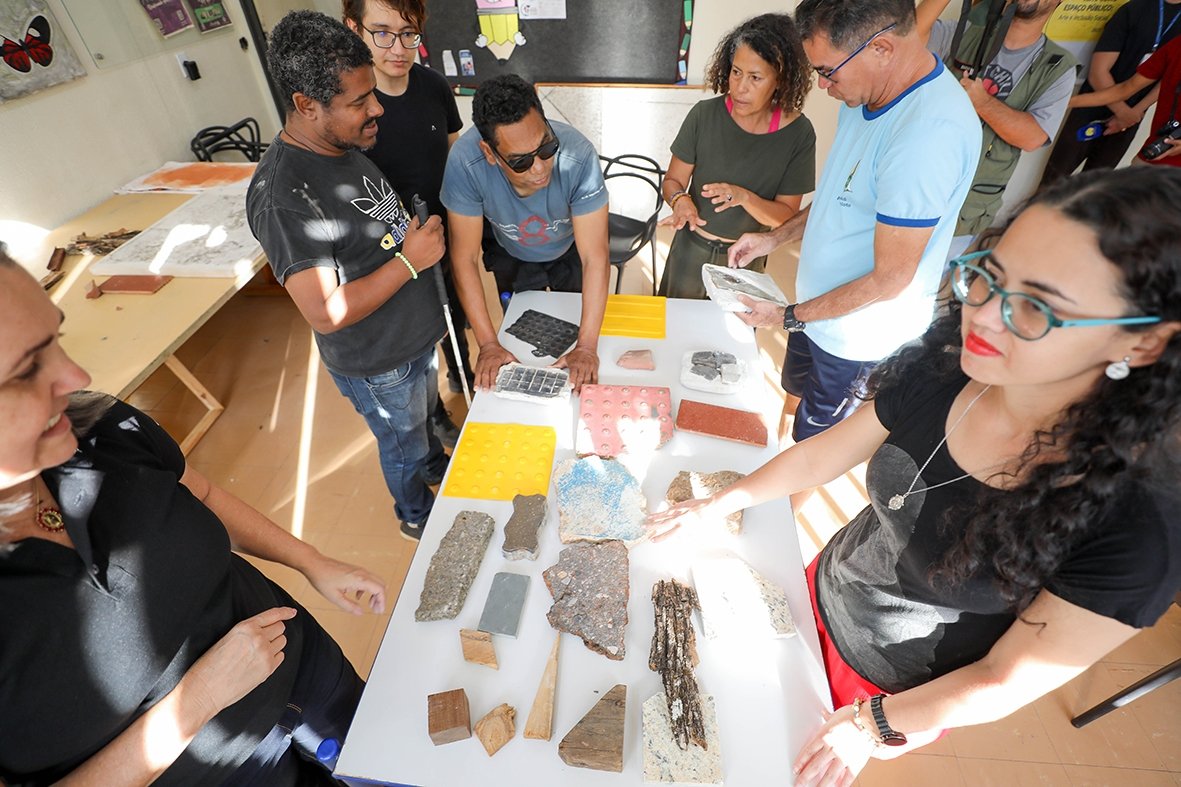 Os participantes também conhecem técnicas táteis e de texturização, além de terem contato com materiais como madeira, cerâmica, tecido, gesso e metais, representando diferentes superfícies e texturas urbanas. “No dia a dia nós sabemos como é, as ruas que andamos, mas tatear foi diferente e divertido”, conta a estudante Maristela Batista, 57 anos. Haverá, ainda, saídas de campo para registros em áudio e georreferenciamento dos caminhos indicados.