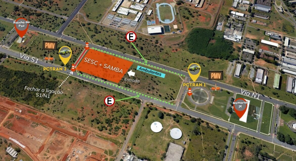 Neste sábado (15), devido ao evento Sesc+Samba, o Detran-DF fará interdições nas vias do Eixo Monumental. O evento será realizado a partir das 16h, no quadrante entre a Praça do Cruzeiro e a Catedral Militar Rainha da Paz. As interferências começam às 23h59 desta sexta (14), quando os agentes do Detran-DF farão a interdição do estacionamento da Praça do Cruzeiro.