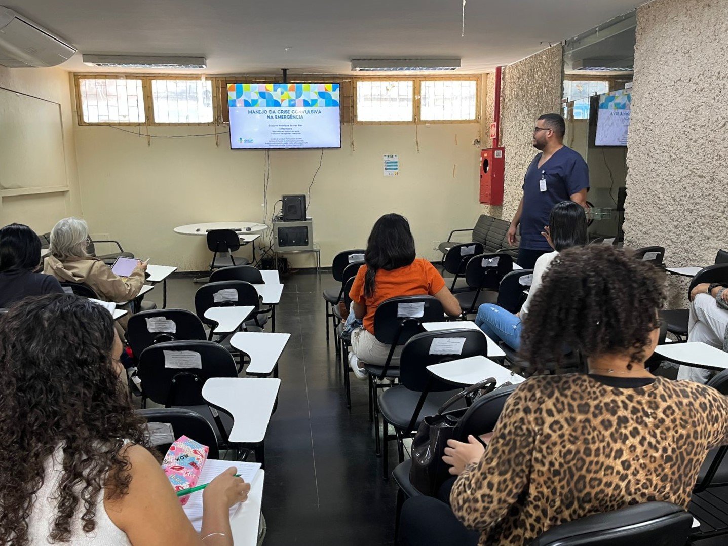 Conduzido pelo enfermeiro Gustavo Rios, o curso abordou desde os tipos de crises convulsivas até o passo a passo do atendimento inicial, com foco na diferenciação entre crise convulsiva e epilepsia, manejo farmacológico e condutas de segurança para pacientes em situação de emergência.