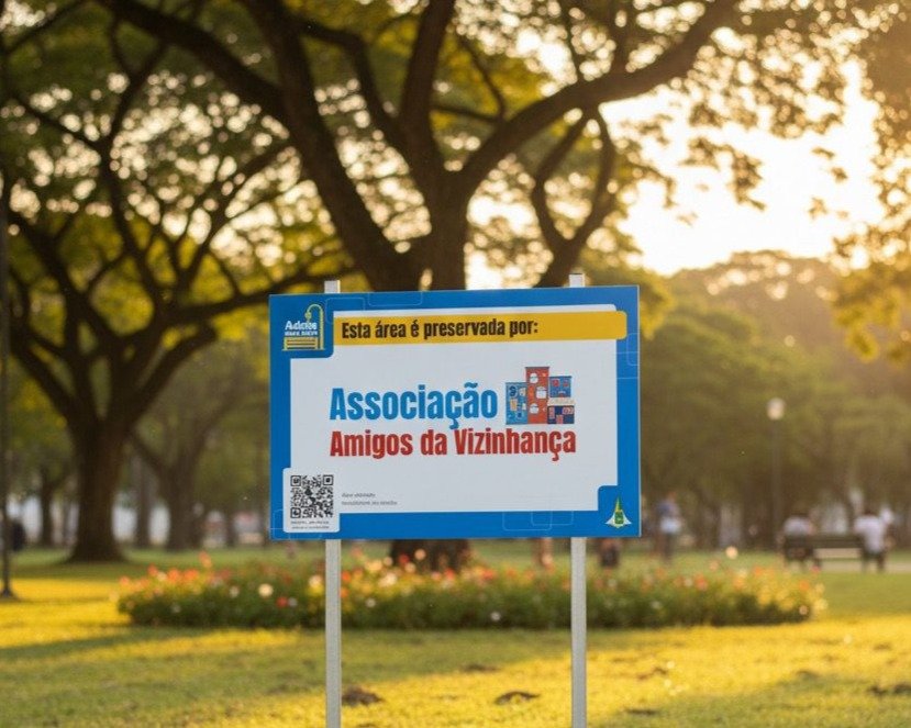 O QR Code poderá direcionar para o site institucional ou redes sociais do adotante, possibilitando à sociedade conhecer mais sobre quem contribui com a manutenção e valorização dos espaços públicos. Já a zona central continua destinada ao nome ou logomarca do adotante, garantindo destaque à parceria.
