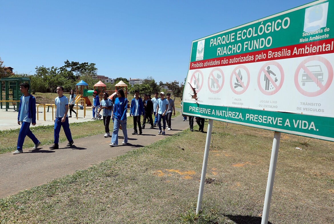 Nesta terça-feira (30), cerca de 20 estudantes do Centro de Ensino Fundamental (CEF) 10 do Guará participaram do Programa Parque Educador, no Parque Ecológico do Riacho Fundo I e II. A iniciativa promove atividades de educação integral, ambiental e patrimonial nas Unidades de Conservação (UCs) do Distrito Federal e é desenvolvida em parceria pelo Instituto Brasília Ambiental, a Secretaria do Meio Ambiente (Sema-DF) e a Secretaria de Educação (SEEDF). Desde a criação, o programa já beneficiou mais de 21,3 mil estudantes, sendo 1.691 apenas no primeiro semestre deste ano.