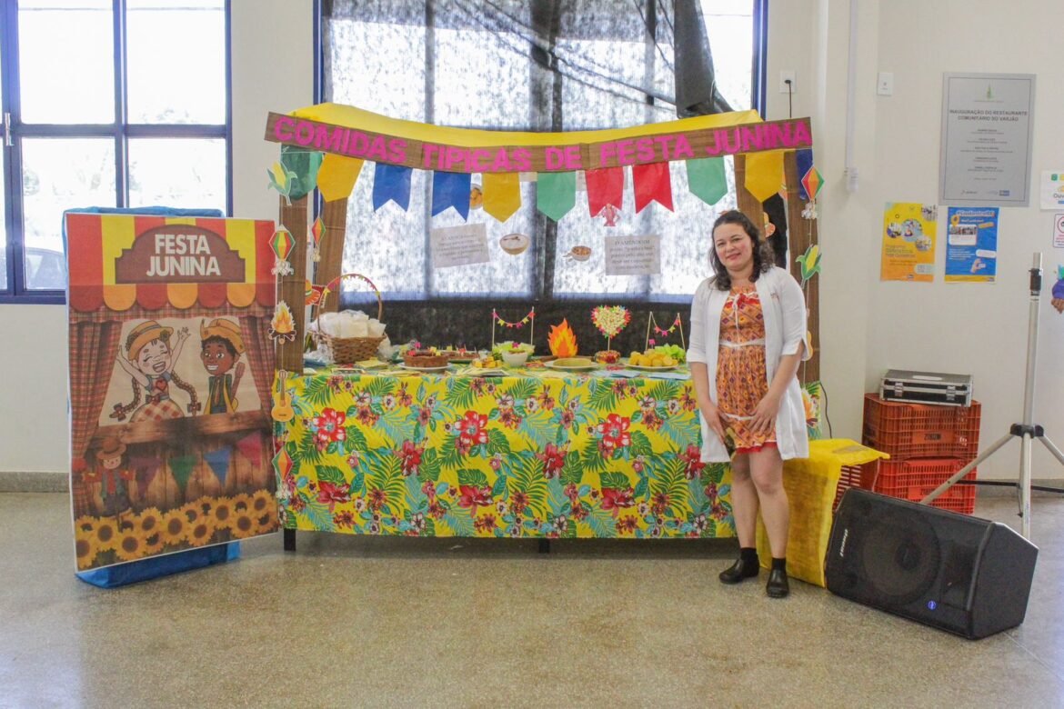 As equipes decoraram os restaurantes com a temática junina, prepararam cartazes e fôlderes com explicações sobre os nutrientes de alimentos típicos dos festejos juninos, como a canjica, a pipoca, o milho e o amendoim.