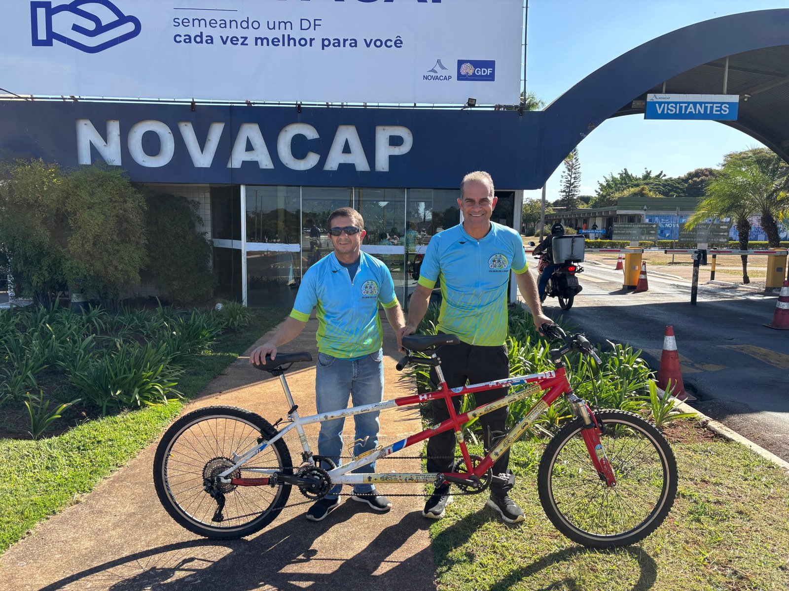 Parece uma bicicleta, mas não é bem isso. São 30kg de ferro bruto que separam as duas rodas aro 26. Dois bancos, duas coroas com pedais e dois guidões. Ela está mais para um engenhoca geminada para dar asas ao sonho da dupla Didi e Zaca. Silomar, o “Didi”, assume a dianteira, a função do guia, enquanto Genival, o “Zaca”, totalmente cego, acomoda-se logo atrás. Pedalam juntos para empurrar essa quase bike pelos muitos quilômetros que percorrem de três a quatro vezes por semana.
