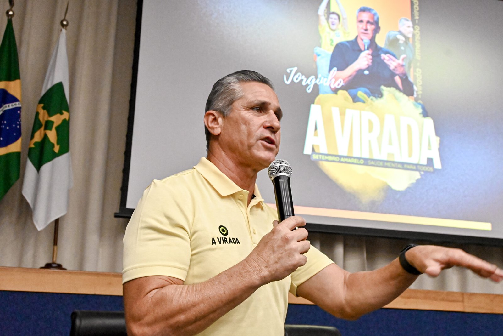 O tetracampeão mundial de futebol Jorginho compartilhou, nesta terça-feira (2), sua trajetória de vida em uma palestra para os colaboradores do Instituto de Gestão Estratégica de Saúde do Distrito Federal (IgesDF). O encontro integrou a campanha Setembro mais que amarelo ー Todas as Cores, iniciativa do Programa Acolher que, em 2025, amplia o debate sobre saúde mental, valorização da vida e bem-estar dos profissionais de saúde.