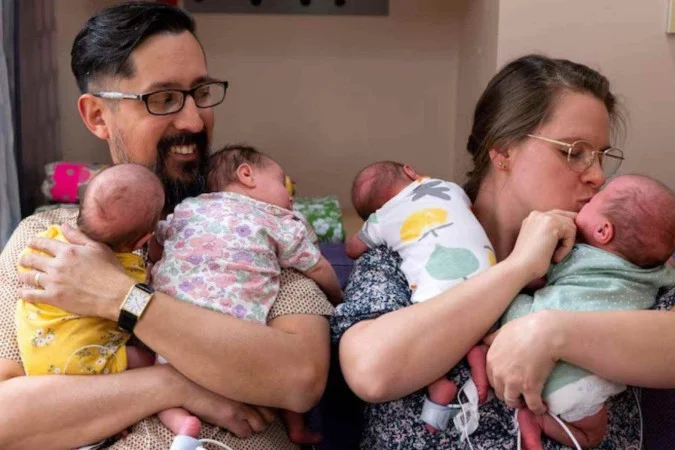 Um casal de Rhode Island, nos Estados Unidos, recebeu uma surpresa raríssima: a mãe, Rachel Vargas, deu à luz quadrigêmeas idênticas. A gestação ocorreu de forma natural, sem tratamentos para fertilidade ou qualquer outra intervenção, o que é considerado extremamente raro. De acordo com especialistas, a chance é de uma gravidez a cada 11 milhões de casos.